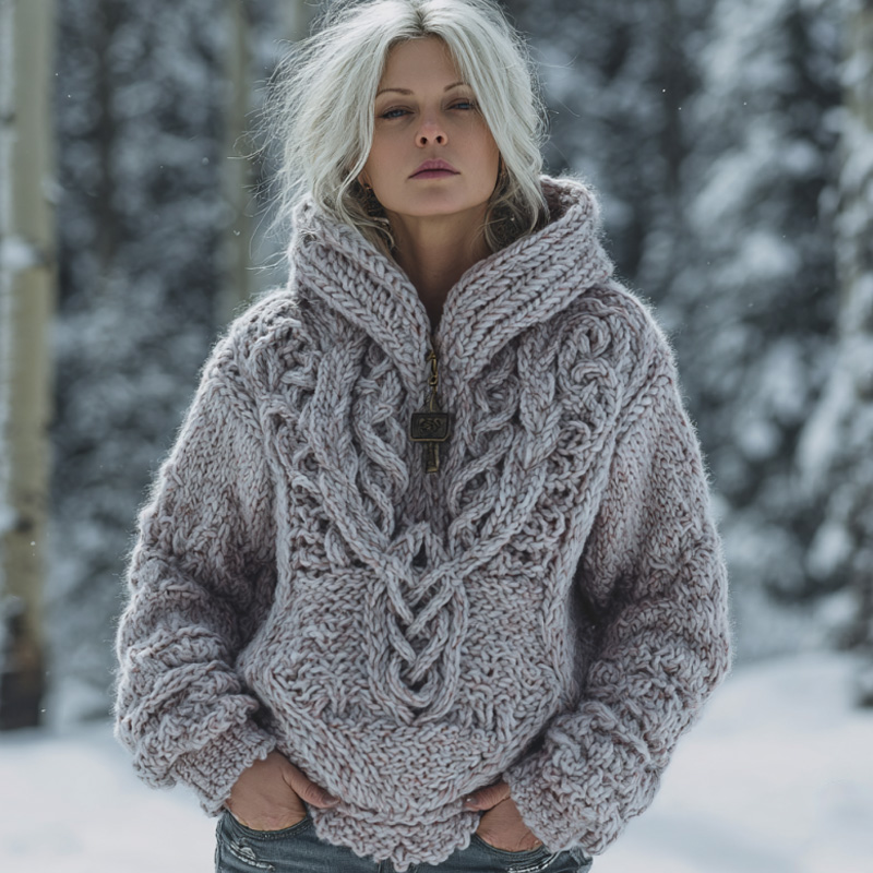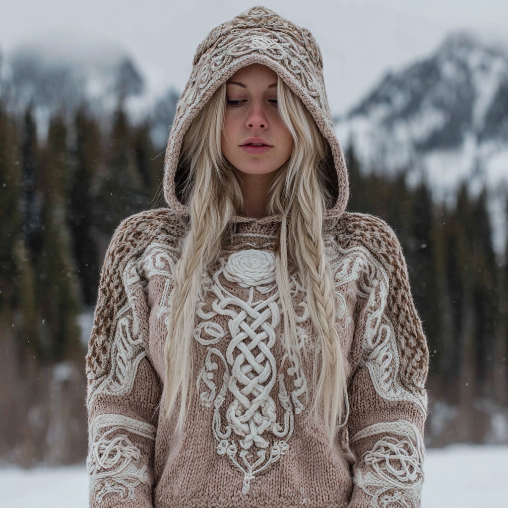 Women's Vintage Casual Viking Knit Hooded Sweater