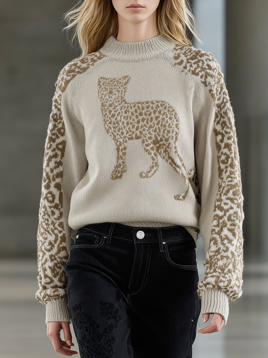Fashionable Brown Leopard Print Pullover Sweater