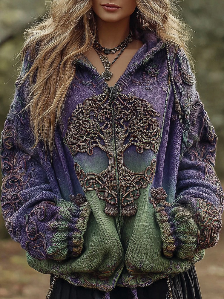 Women's Vintage Viking Tree Of Life Knit Zipper Cardigan Sweater