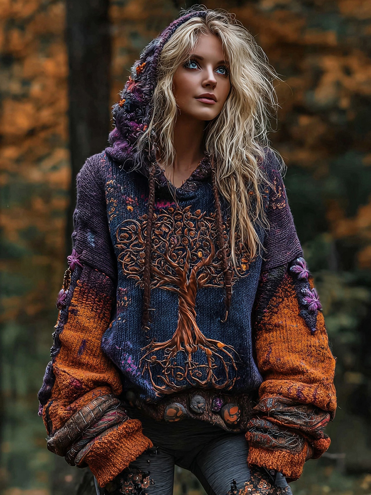 Tree Of Life Gothic Colorblock Hooded Sweater
