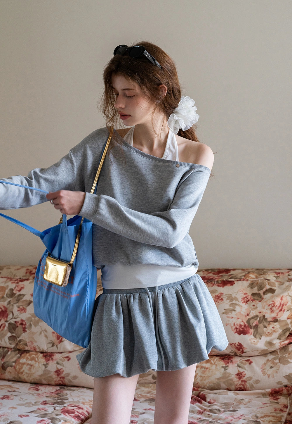 Off-Shoulder Sweatshirt with Built-in Tank Top