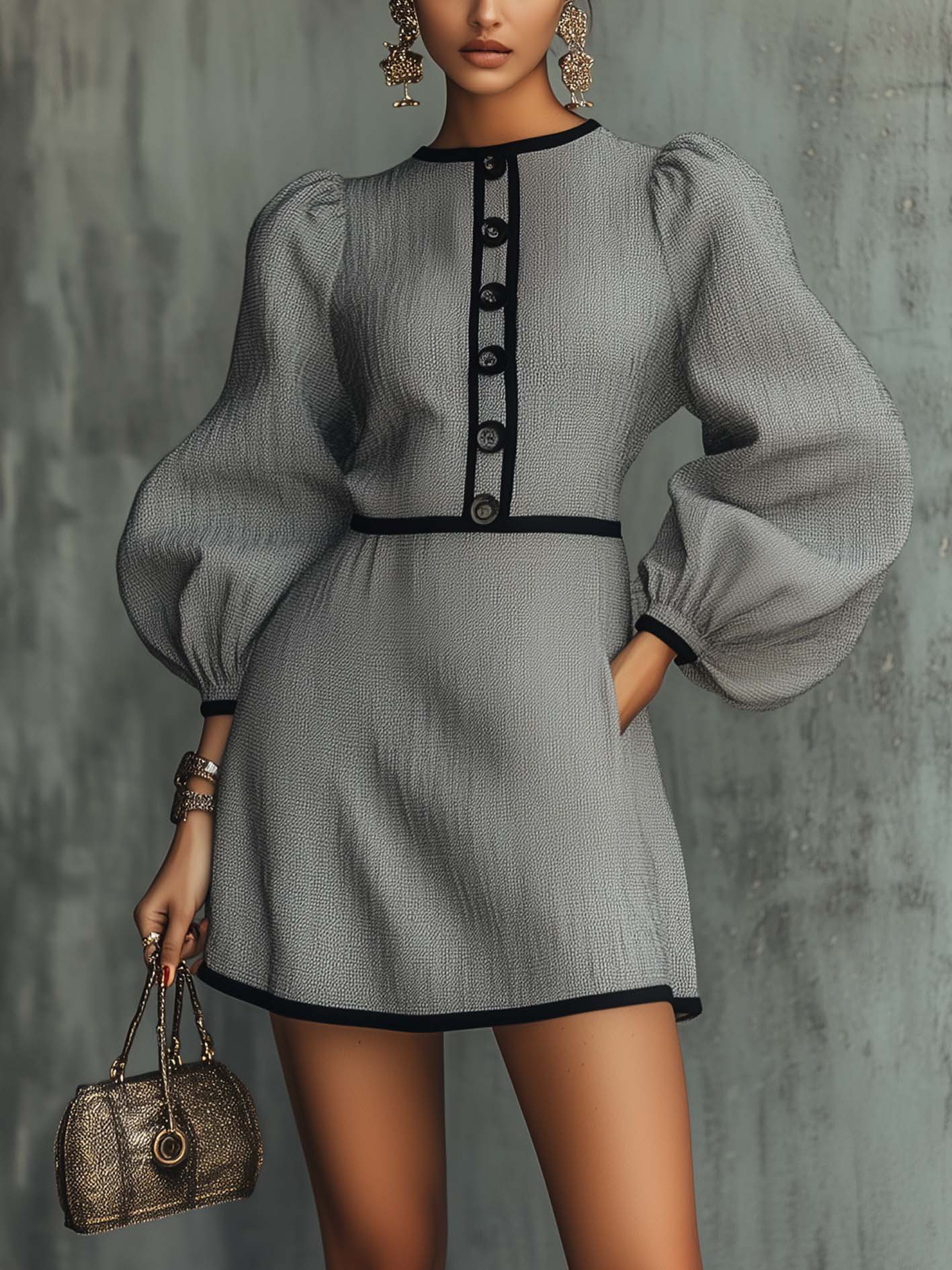 Print Textured Knitted Tassel Long Sleeve Mini Dress