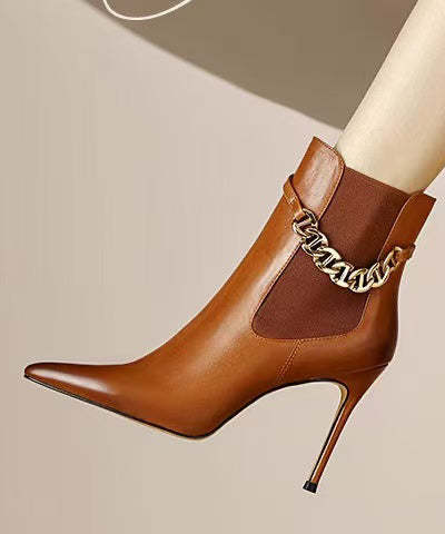 Classy Splicing Stiletto Boots Brown Faux Leather Pointed Toe