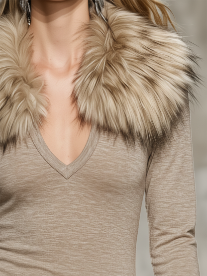 An elegant detachable faux‑fur collar long‑sleeve midi dress offers versatile sophistication with a vintage twist. The detachable collar allows effortless transition between refined daywear and glamorous evening looks—wear it with the faux fur for added warmth and luxury, or remove it for a sleeker, minimalist silhouette. The long sleeves and midi length keep the shape graceful and poised, while the overall design leans toward timeless elegance.