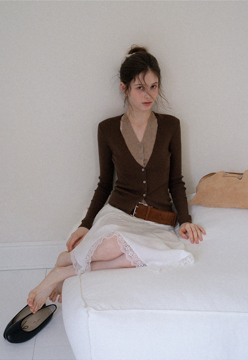 Layered Halter Neck Long Sleeve Knit Top