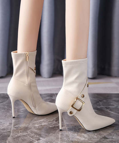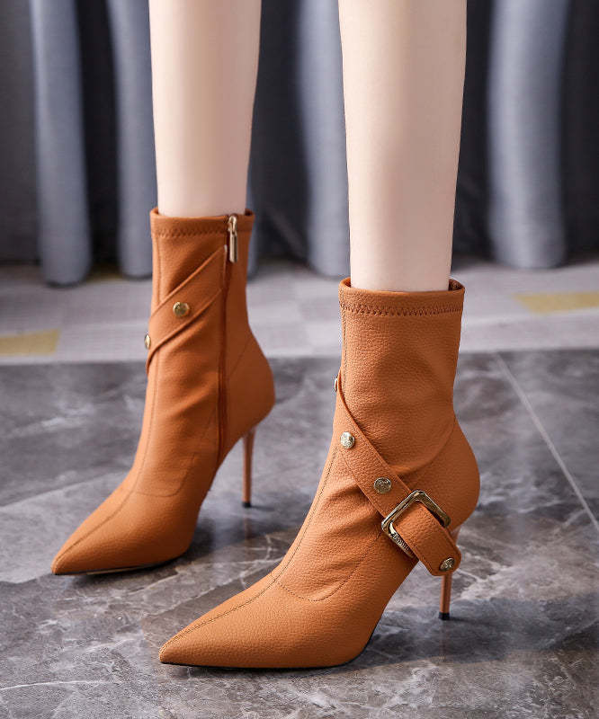Light Coffee Stiletto Faux Leather Boots Fashion Splicing Zippered