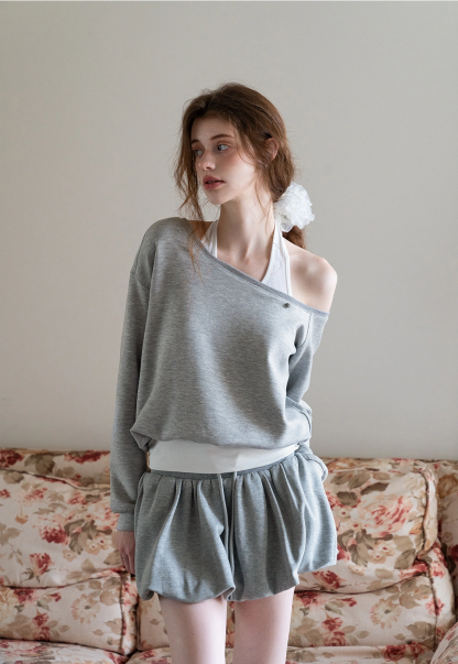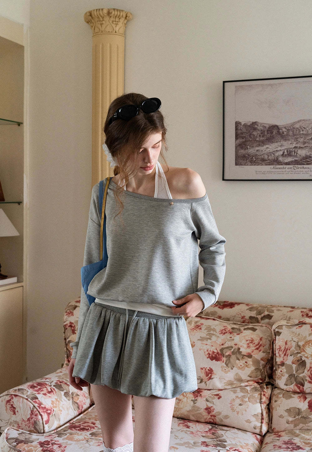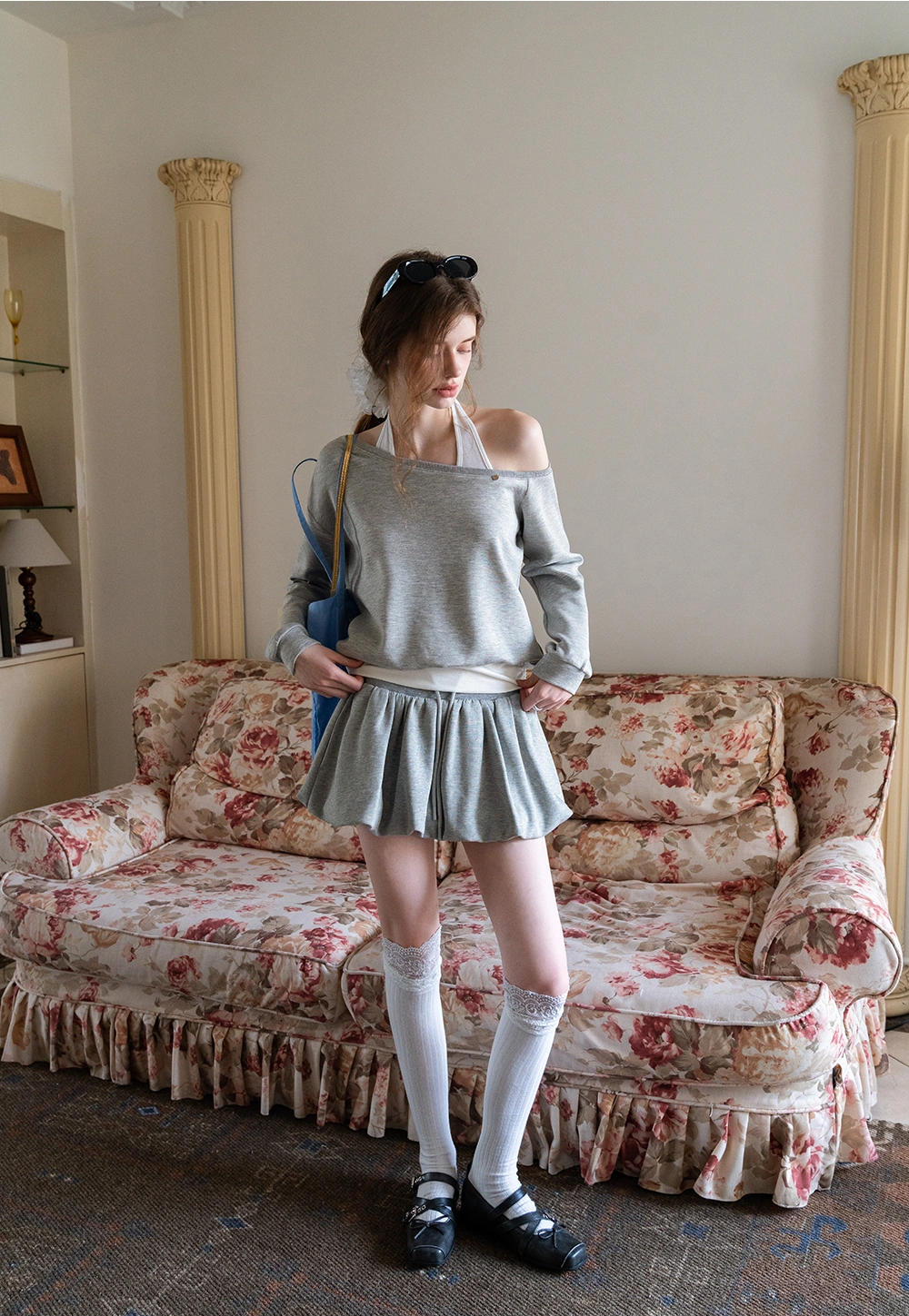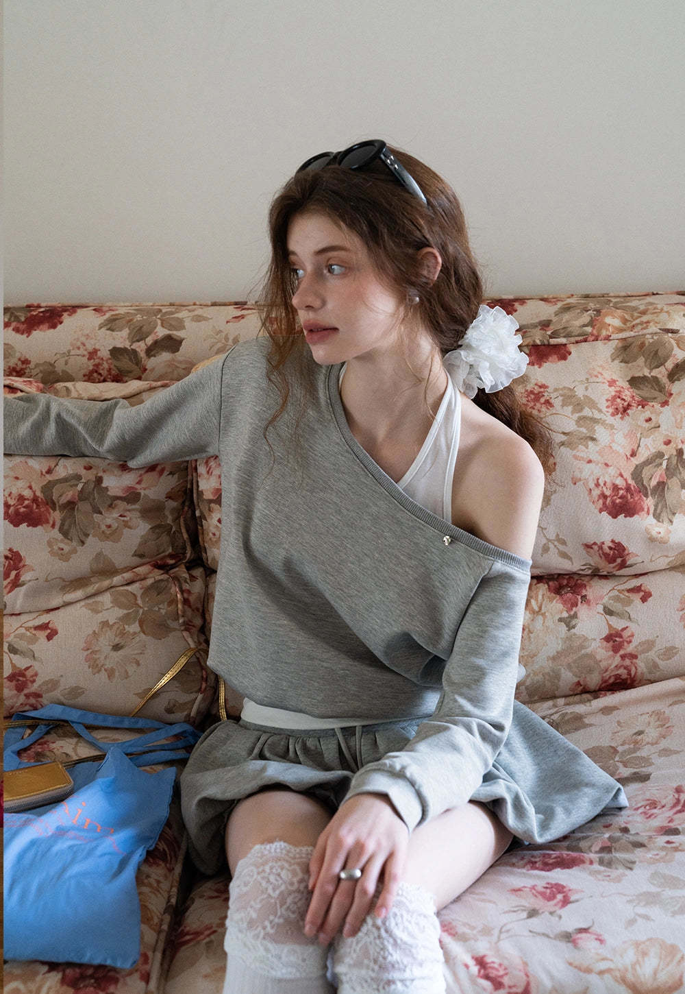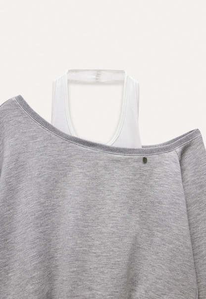 Off-Shoulder Sweatshirt with Built-in Tank Top