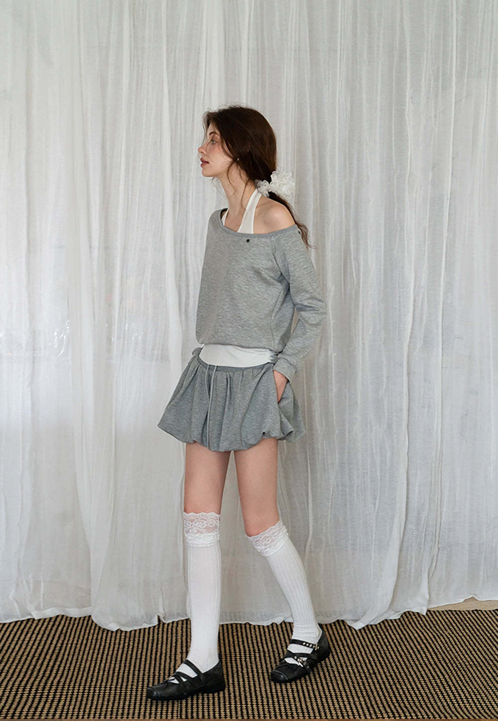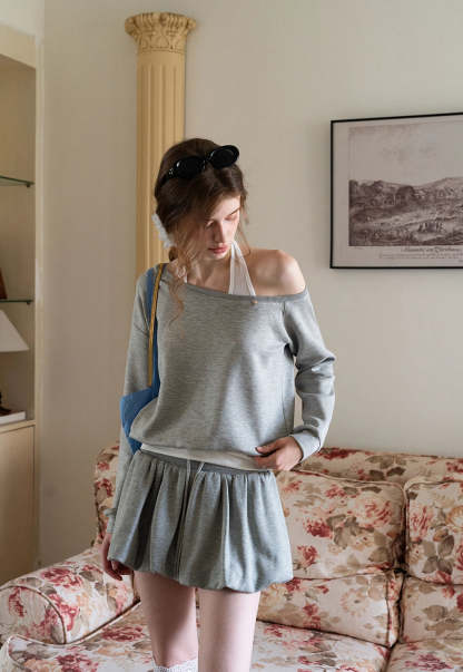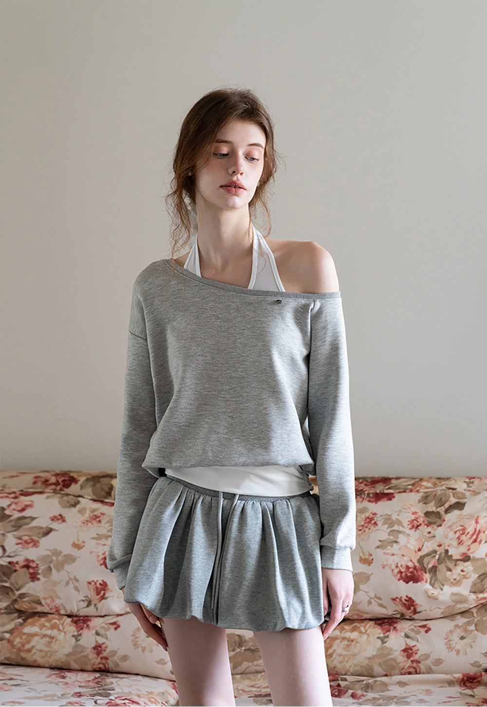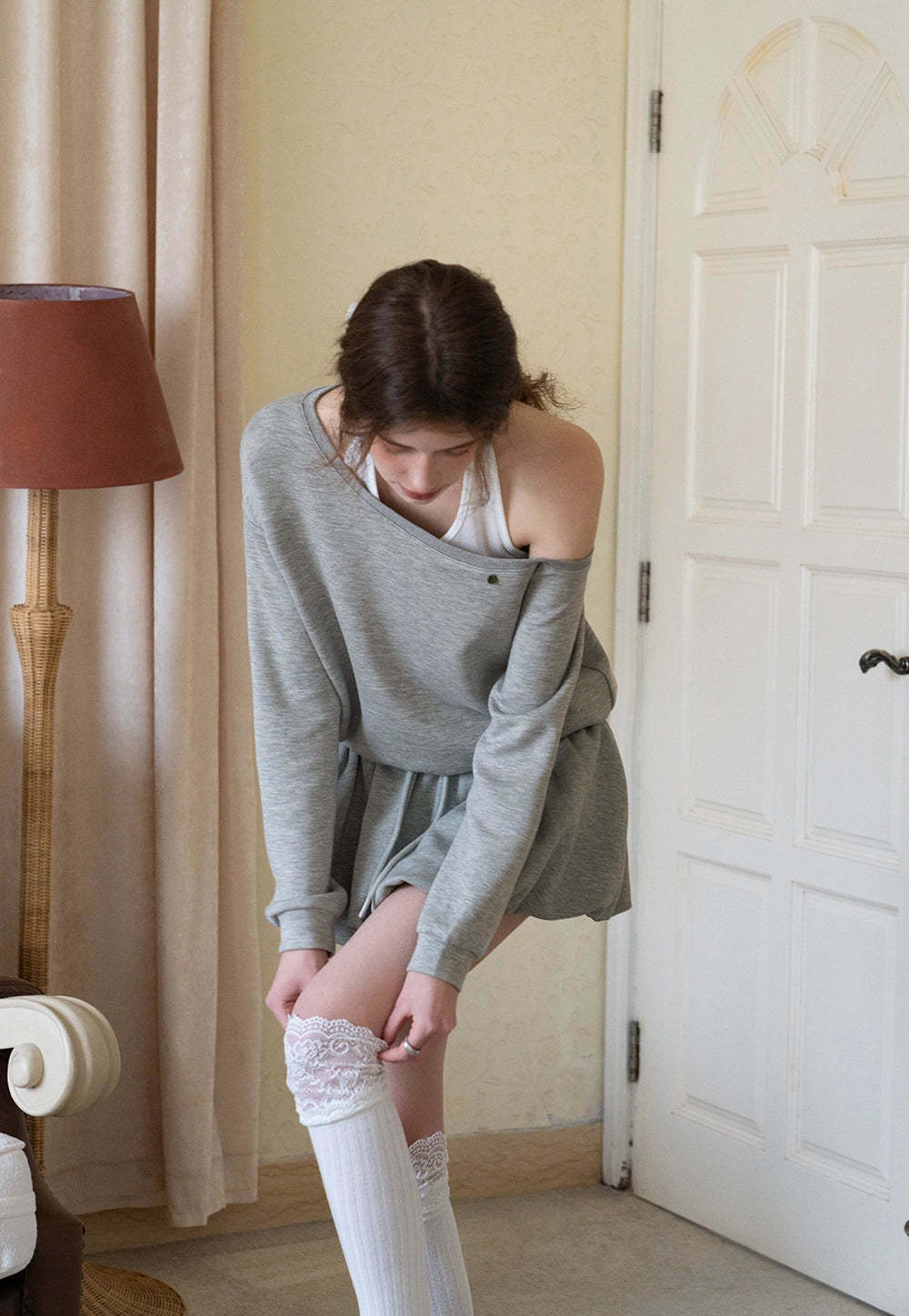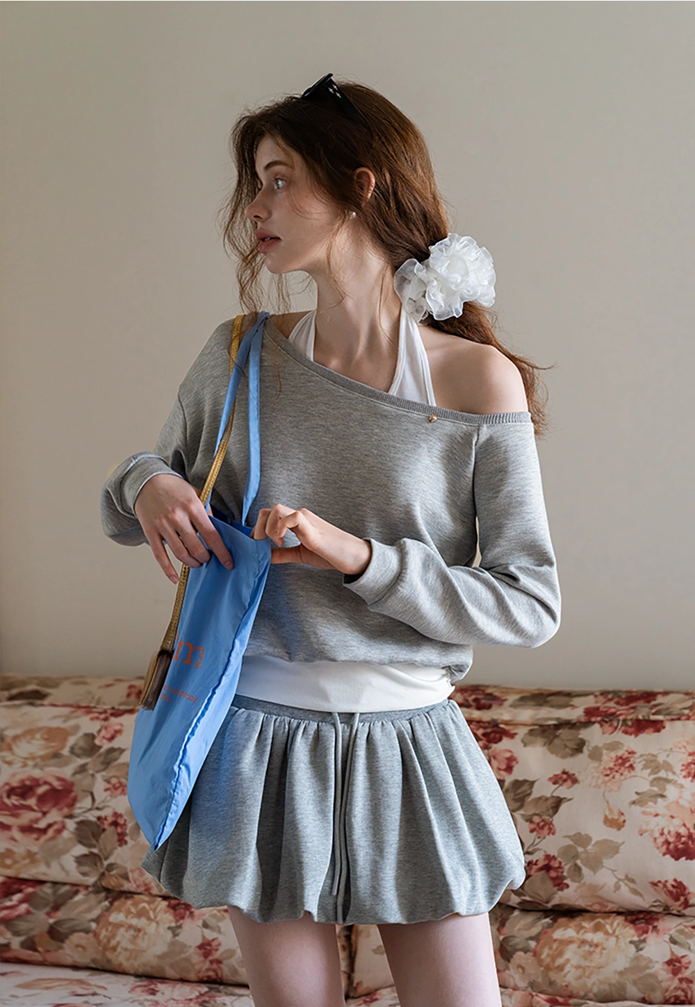 Off-Shoulder Sweatshirt with Built-in Tank Top