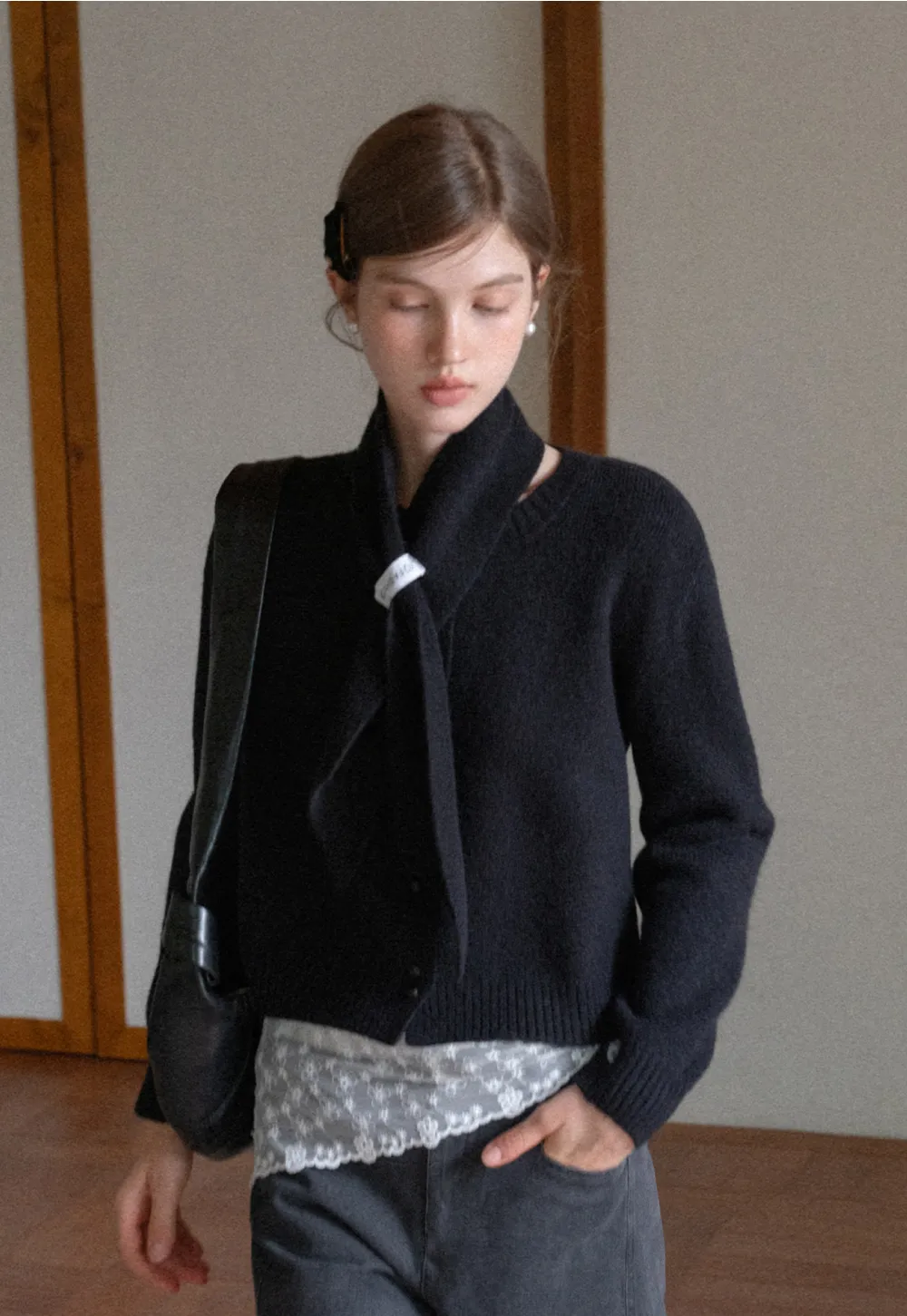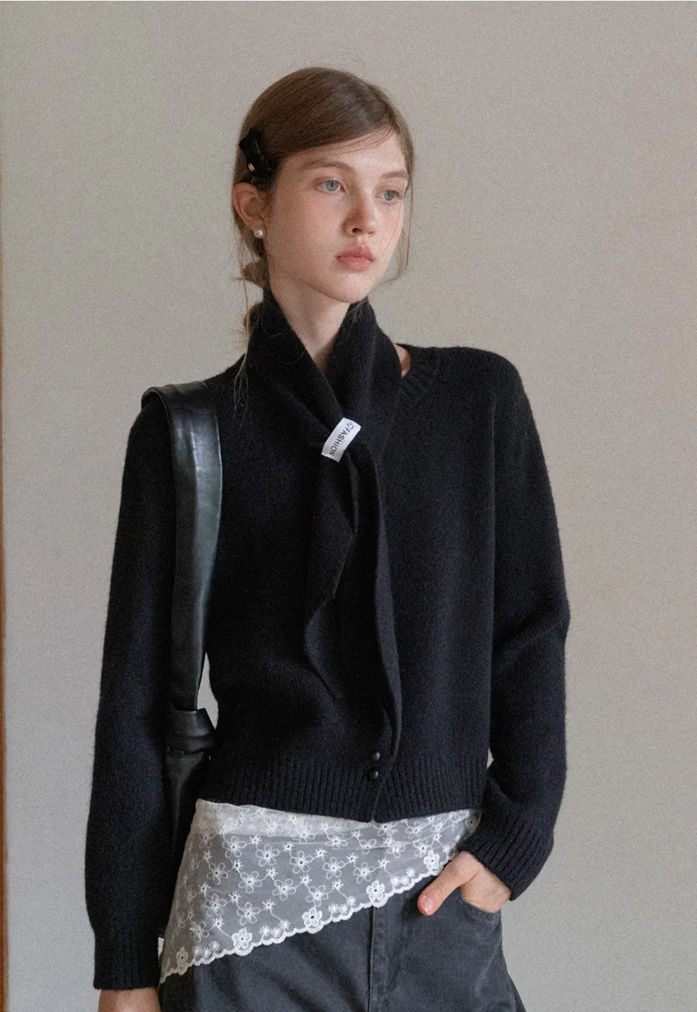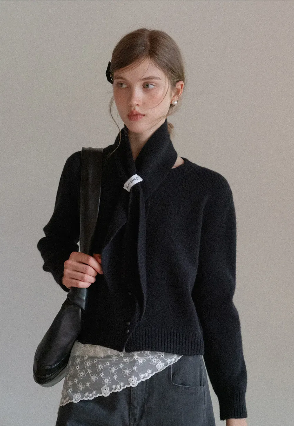 Scarf Detail Knit Cardigan