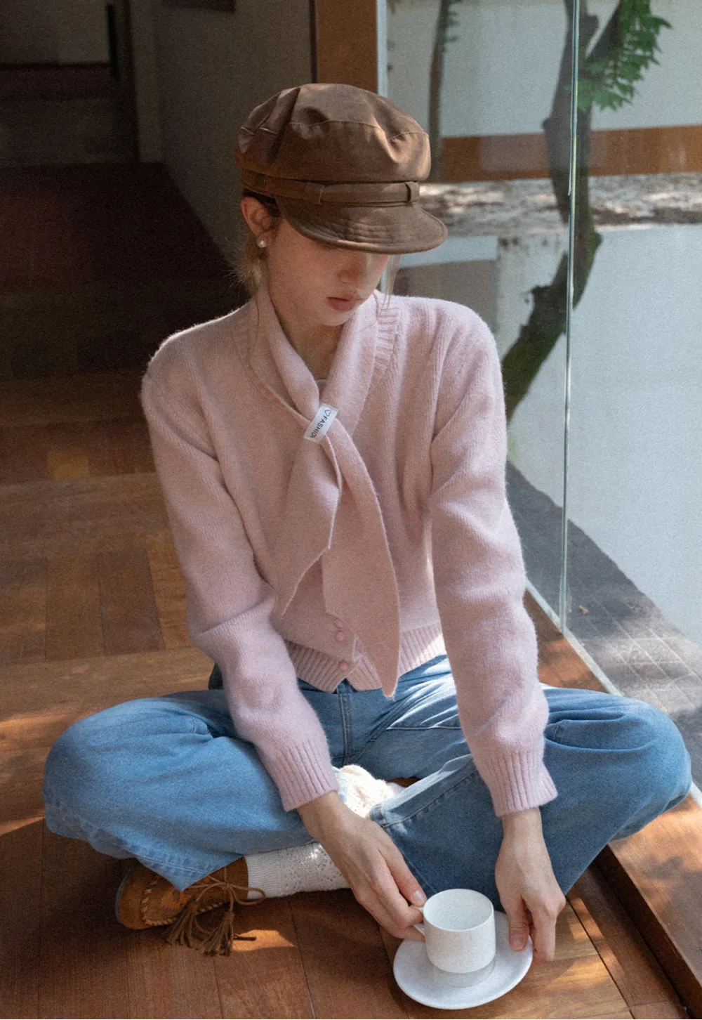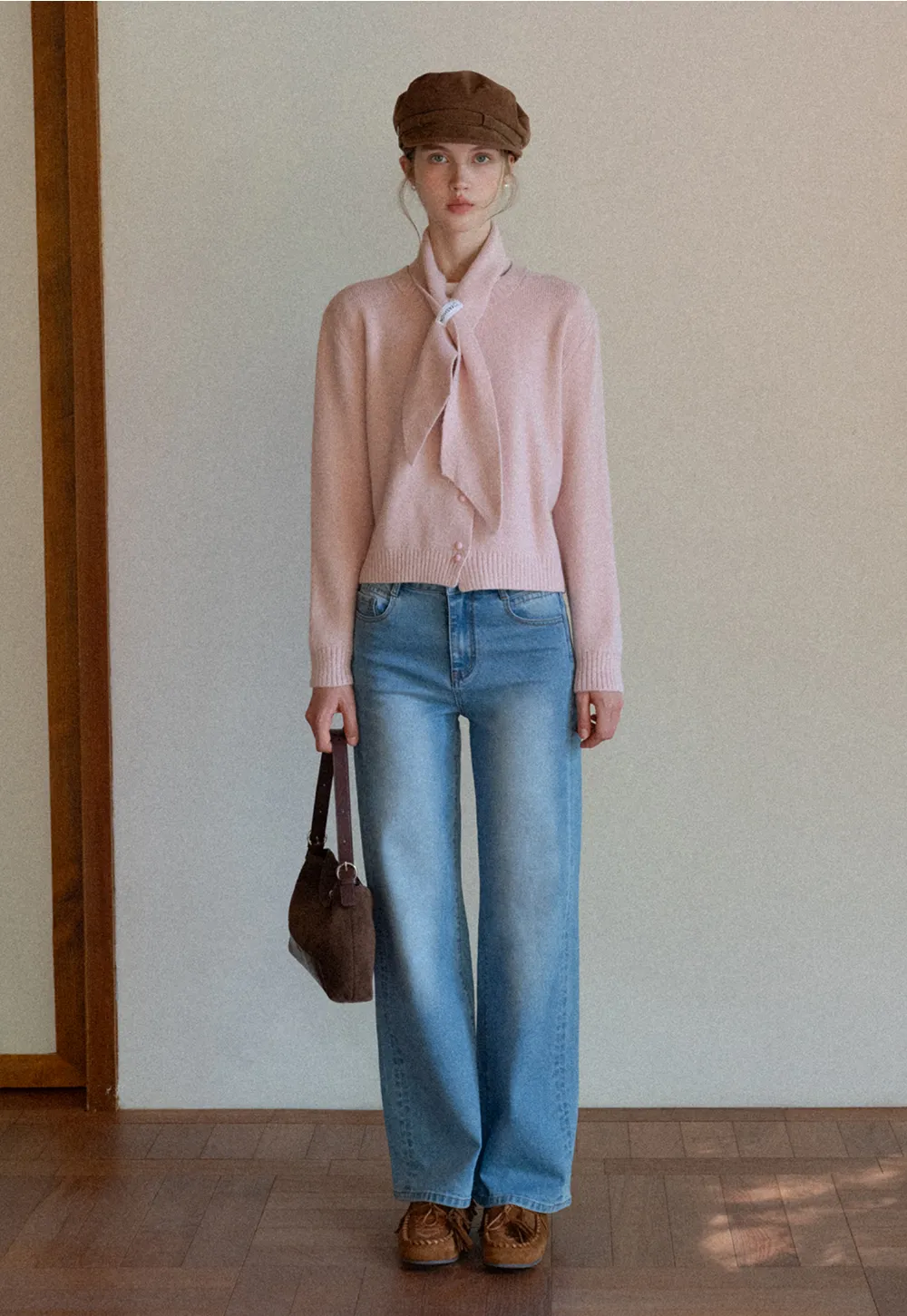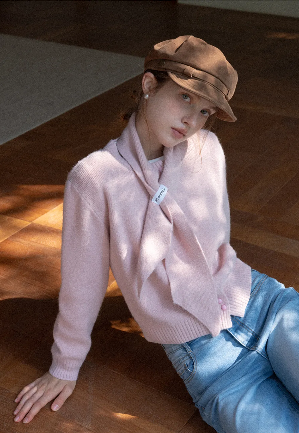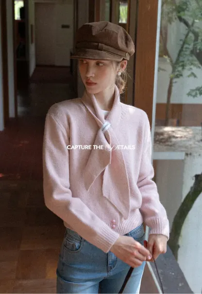 Scarf Detail Knit Cardigan