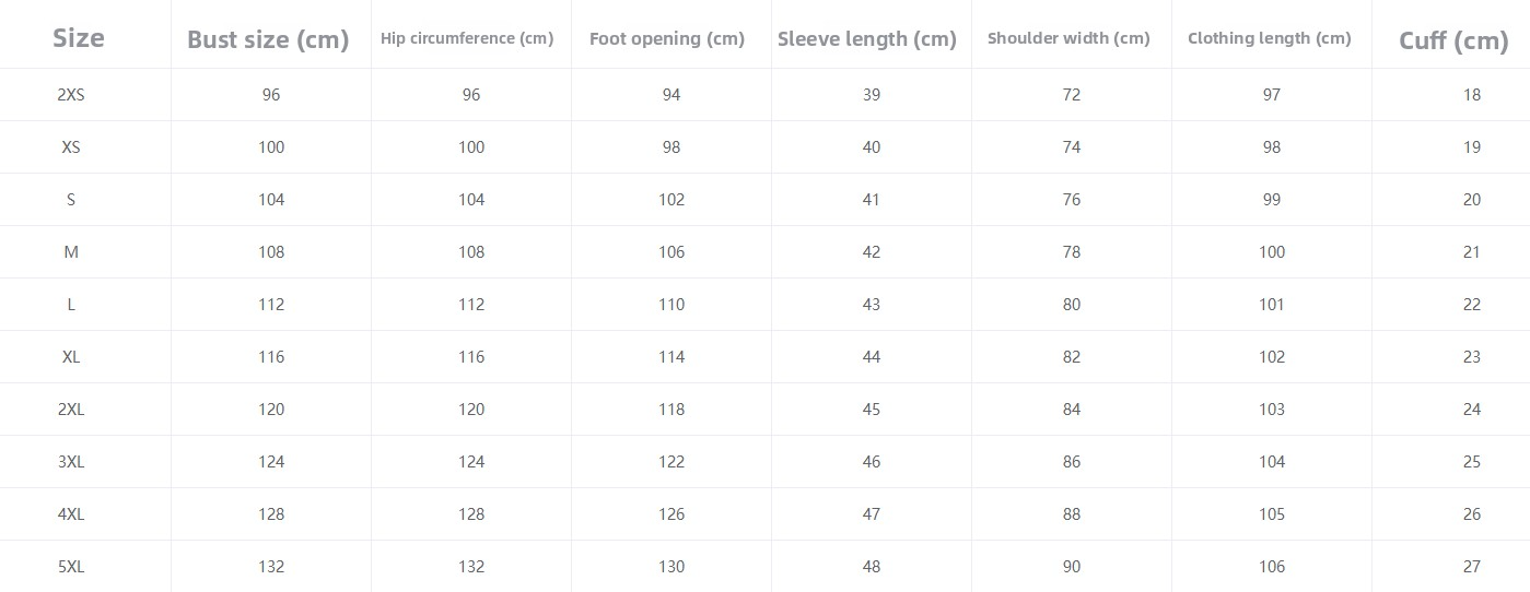 Sizes: XS, S, M, L, XL, 2XL, 3XL, 4XL, 5XL