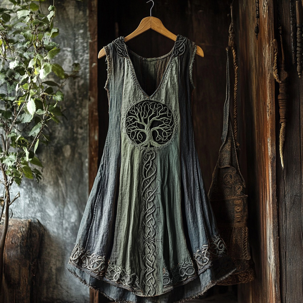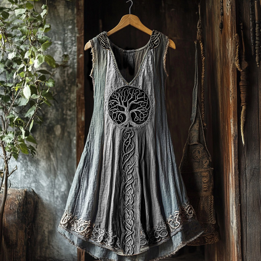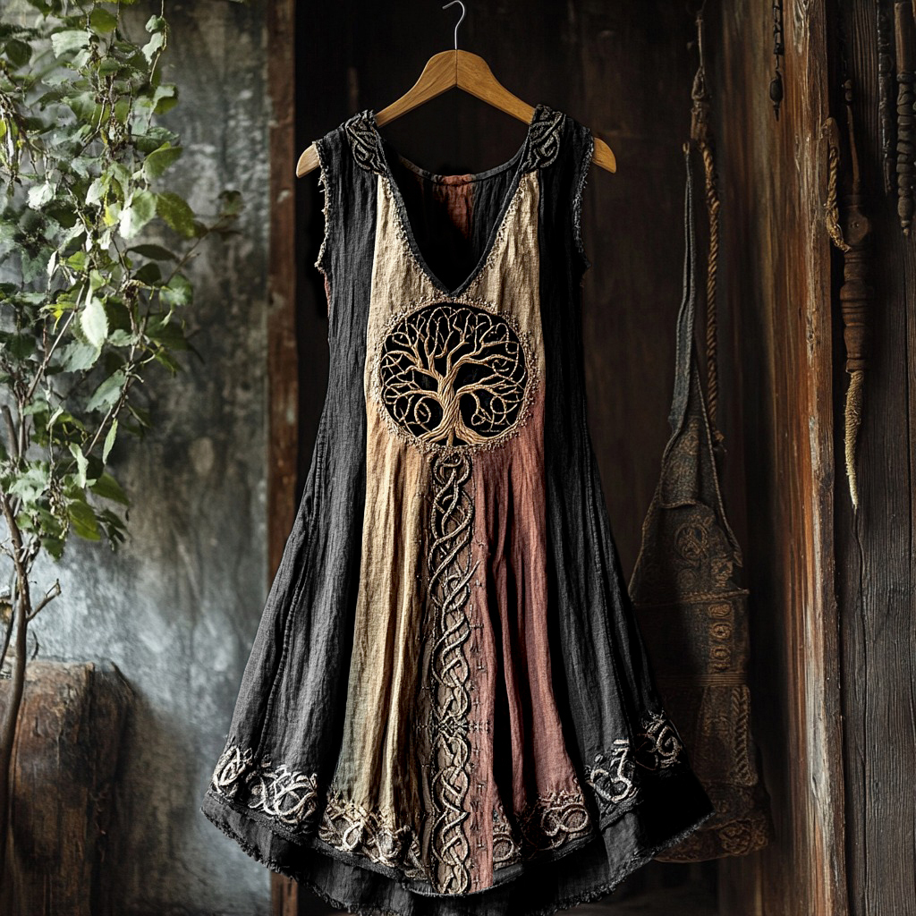 Tribal Viking Colorful Gradient Tree Of Life Lace Art Linen Tank Dress