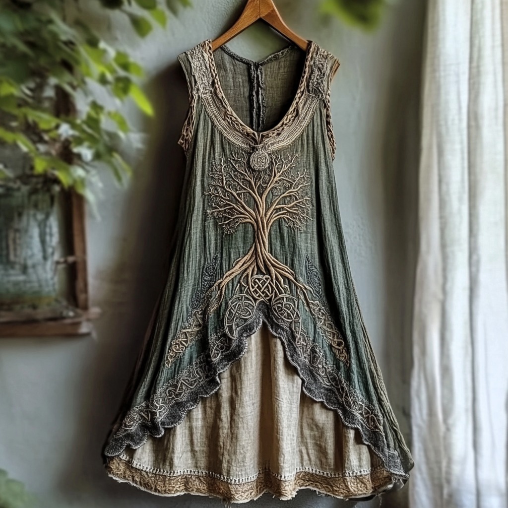 Tribal Viking Life Of Tree Celtic Knot Lace Art Linen Tank Dress