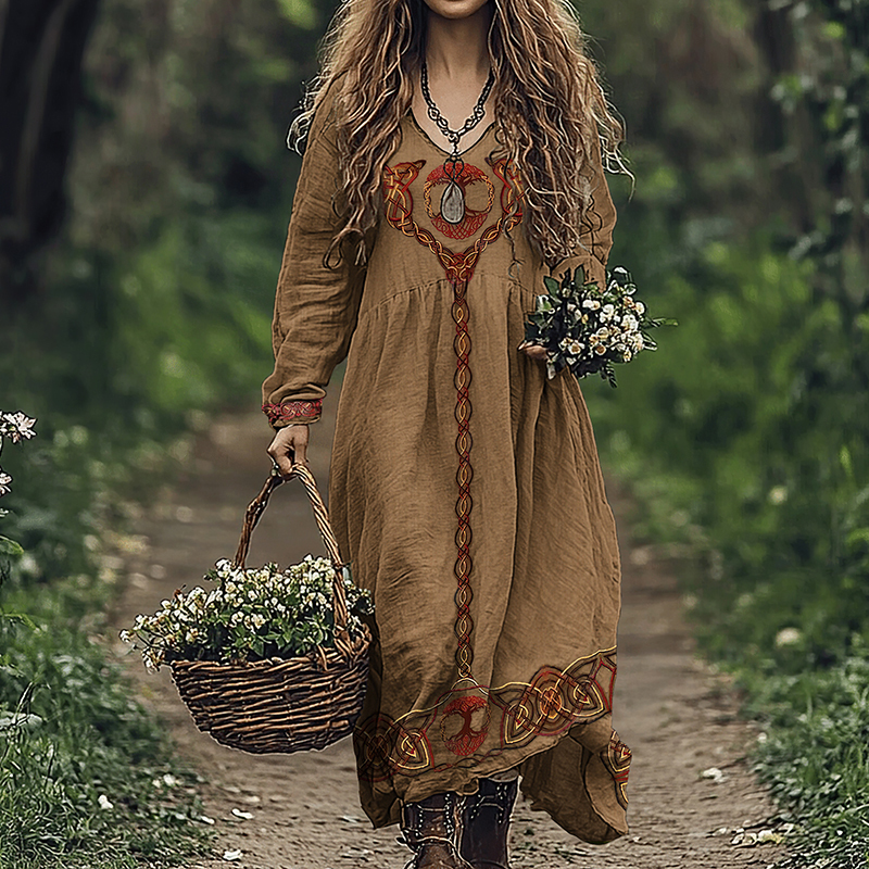 Vintage Celtic Viking Tree Of Life Linen Dress