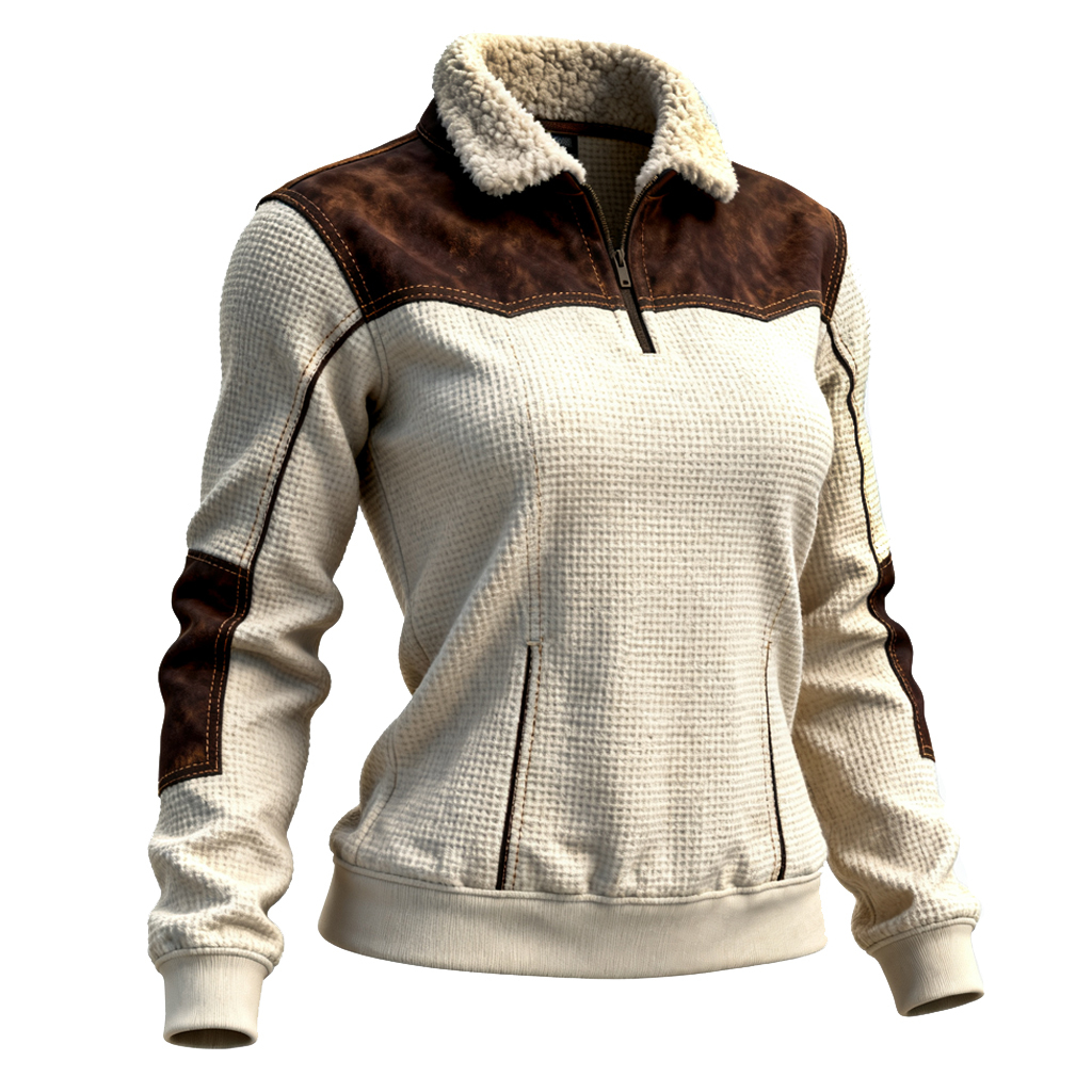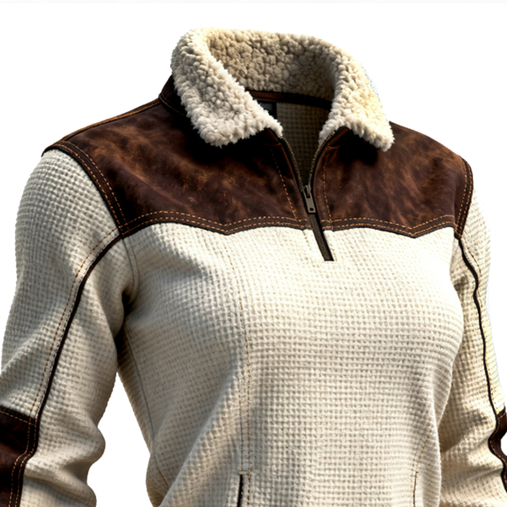 • Design Elements: Faux fur collar, half-zip closure, contrast stitching details