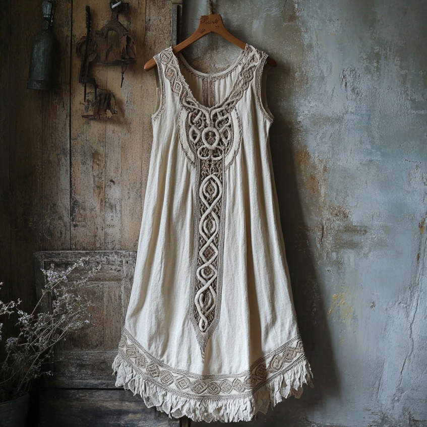 Vintage Tribal Celtic Knot Lace Art Linen Tank Dress