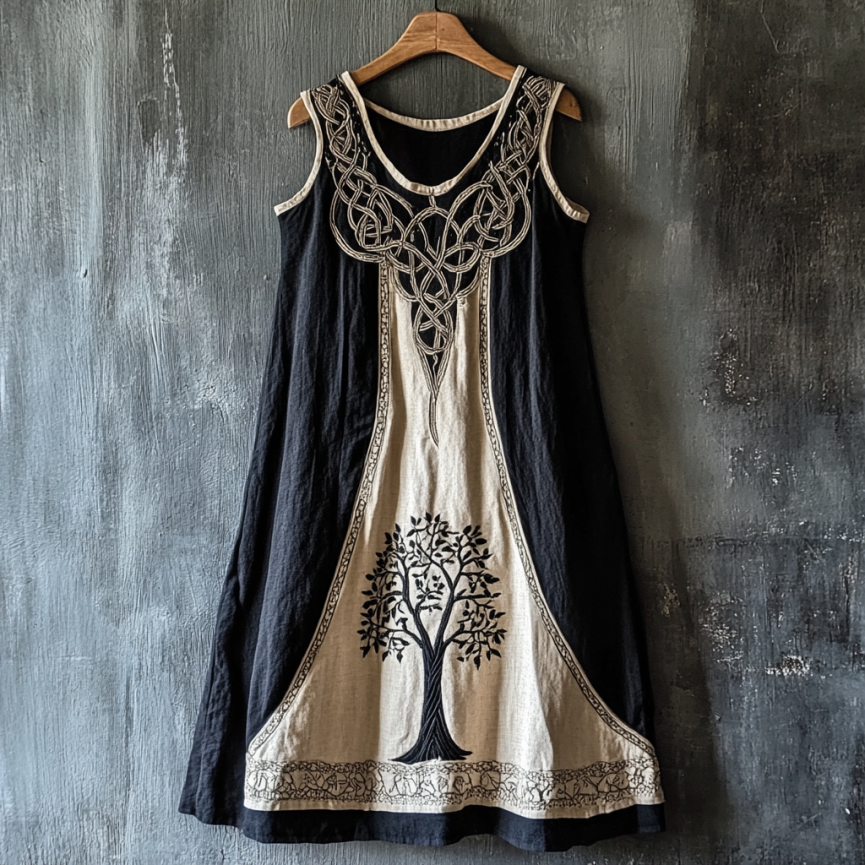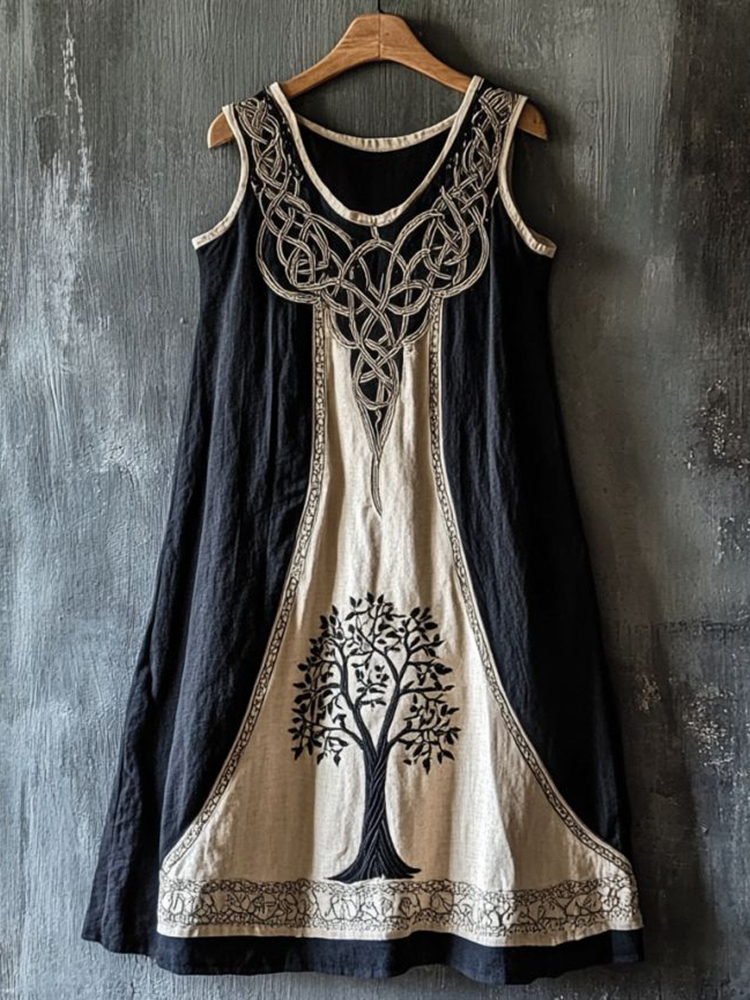 Vintage Viking Tree Of Life Art Linen Sleeveless Maxi Dress