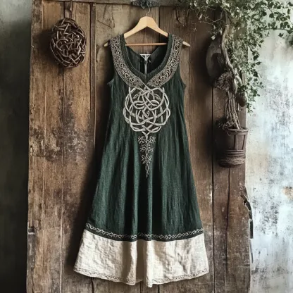 Vintage Viking Tree Of Life Art Linen V-neck Dre Ss