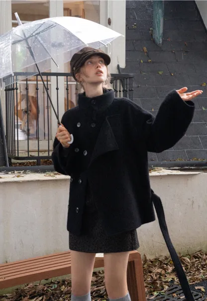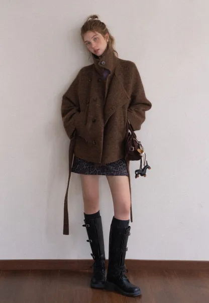 Womens Casual Wool Blend Short Coat