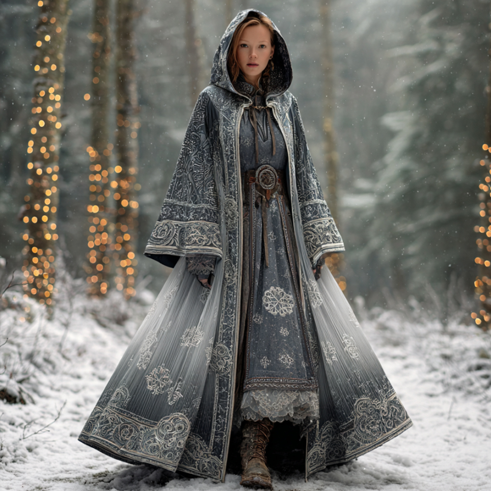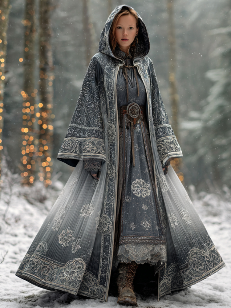 Women's Christmas White Snowflake Gradient Cape