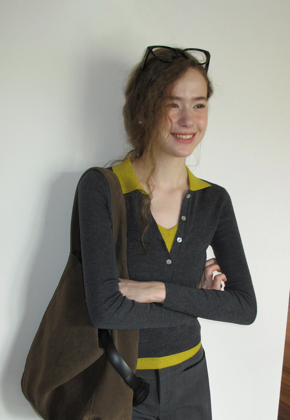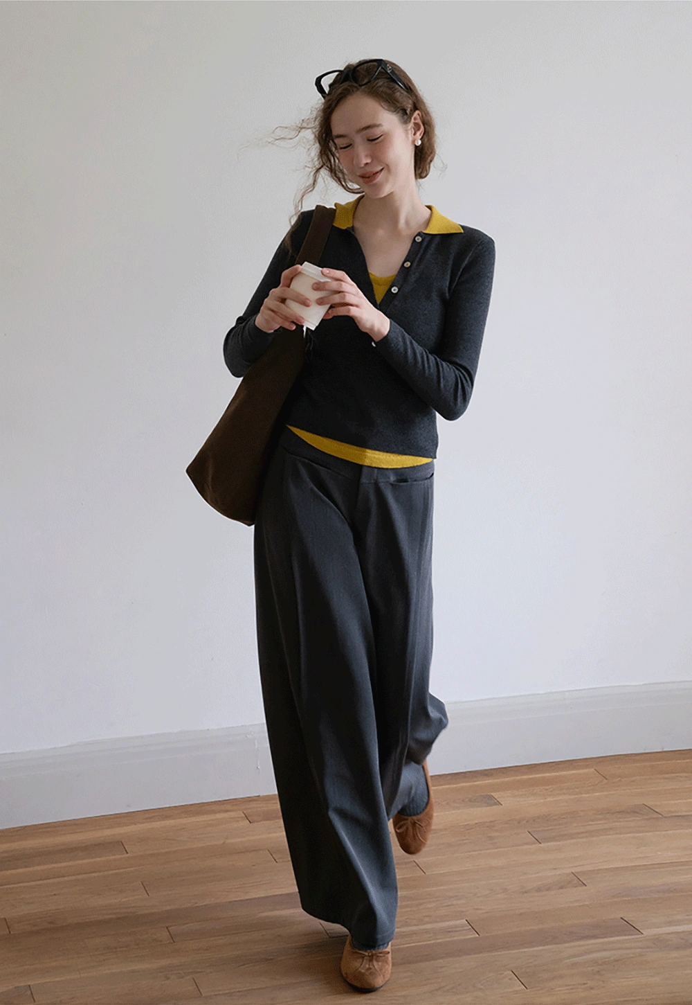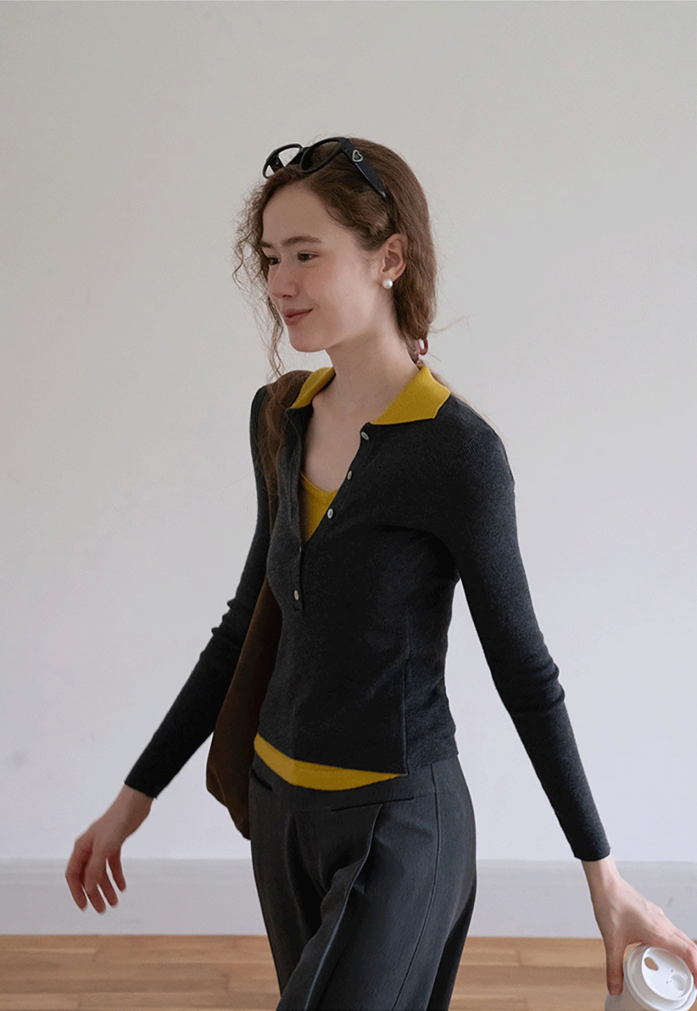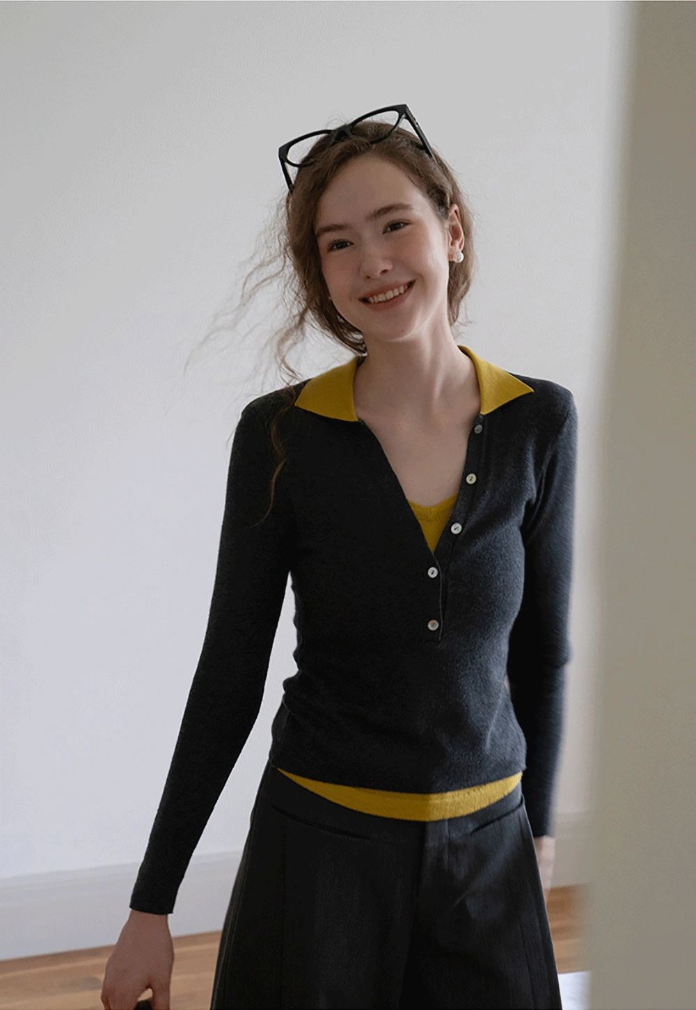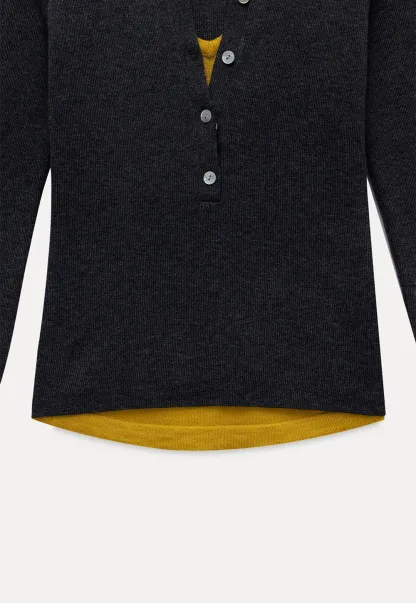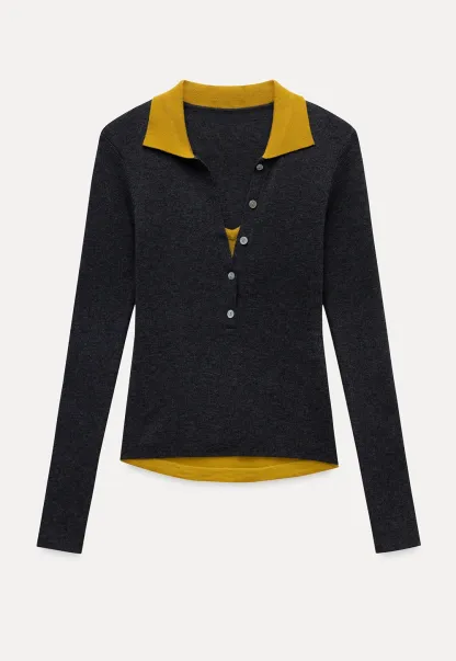 Womens Collared Knit Polo Shirt Long Sleeve with Button Front
