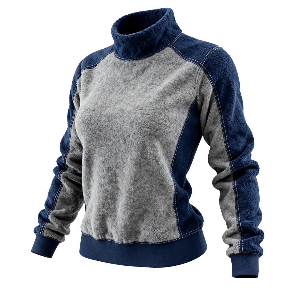 • Design Elements: Contrast color blocking, high neck design, ribbed cuffs and hem