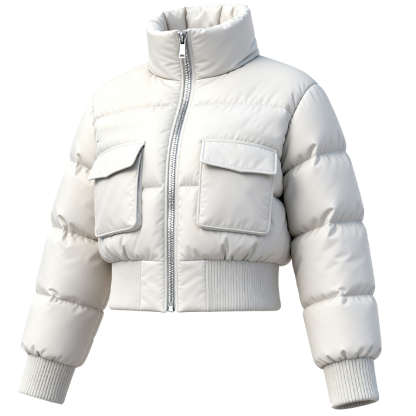 • Design Elements: Two front pockets with flaps, high-neck collar, ribbed cuffs and hem