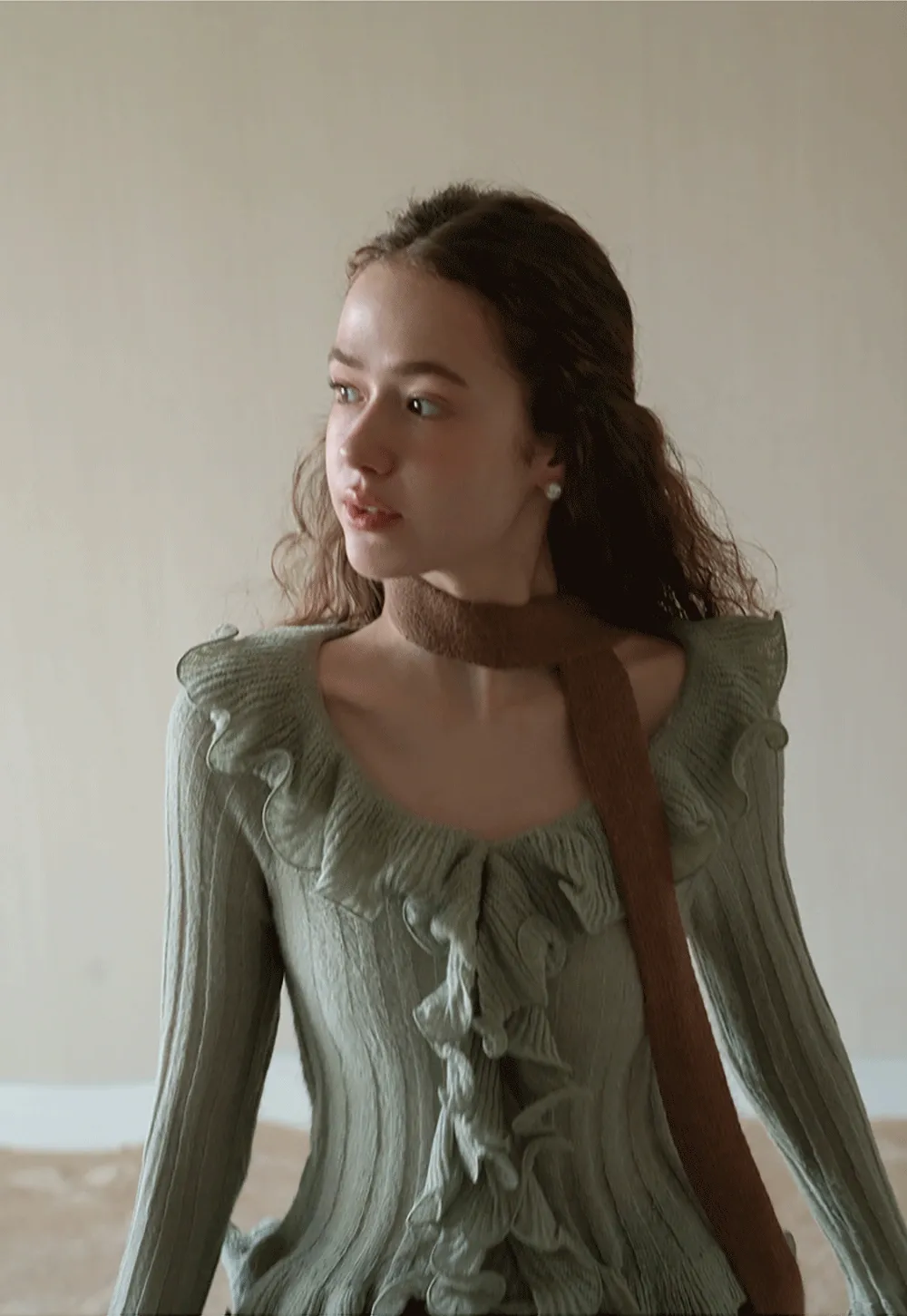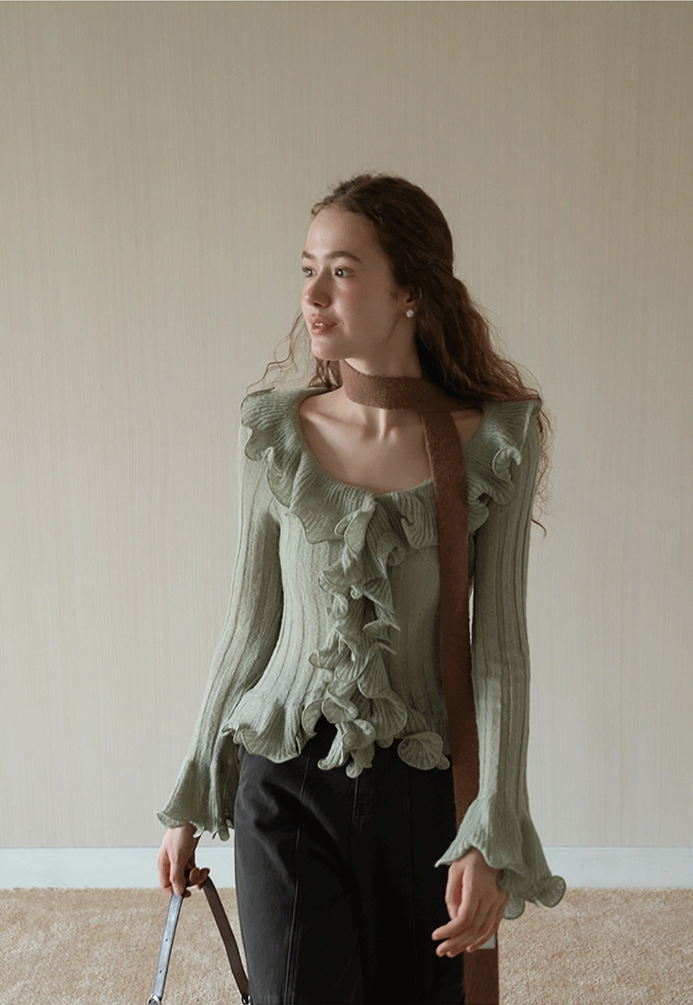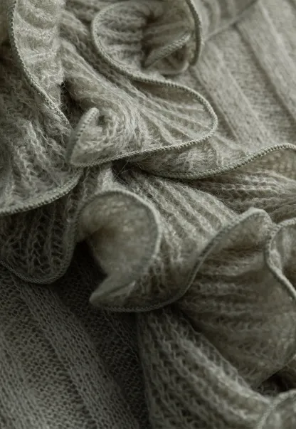 Womens Ruffle Hem Flared Sleeve Knit Top