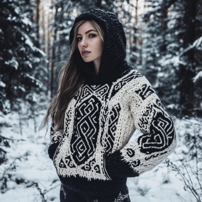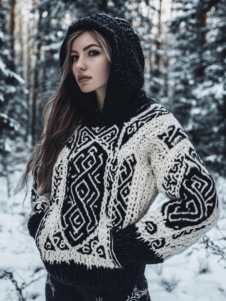 Women's Viking Celtic Knot Vintage Pocket Hooded Sweater