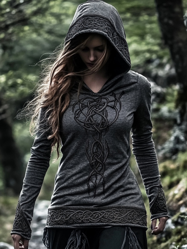 Women's Viking Jacquard Celtic Knot Art Hooded