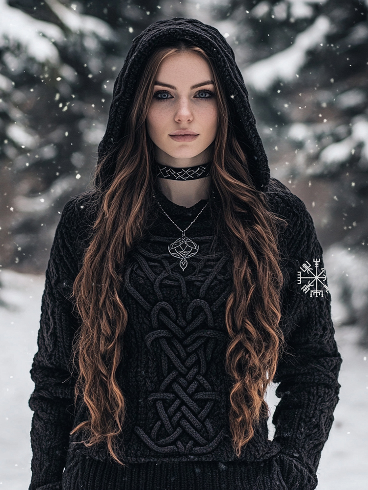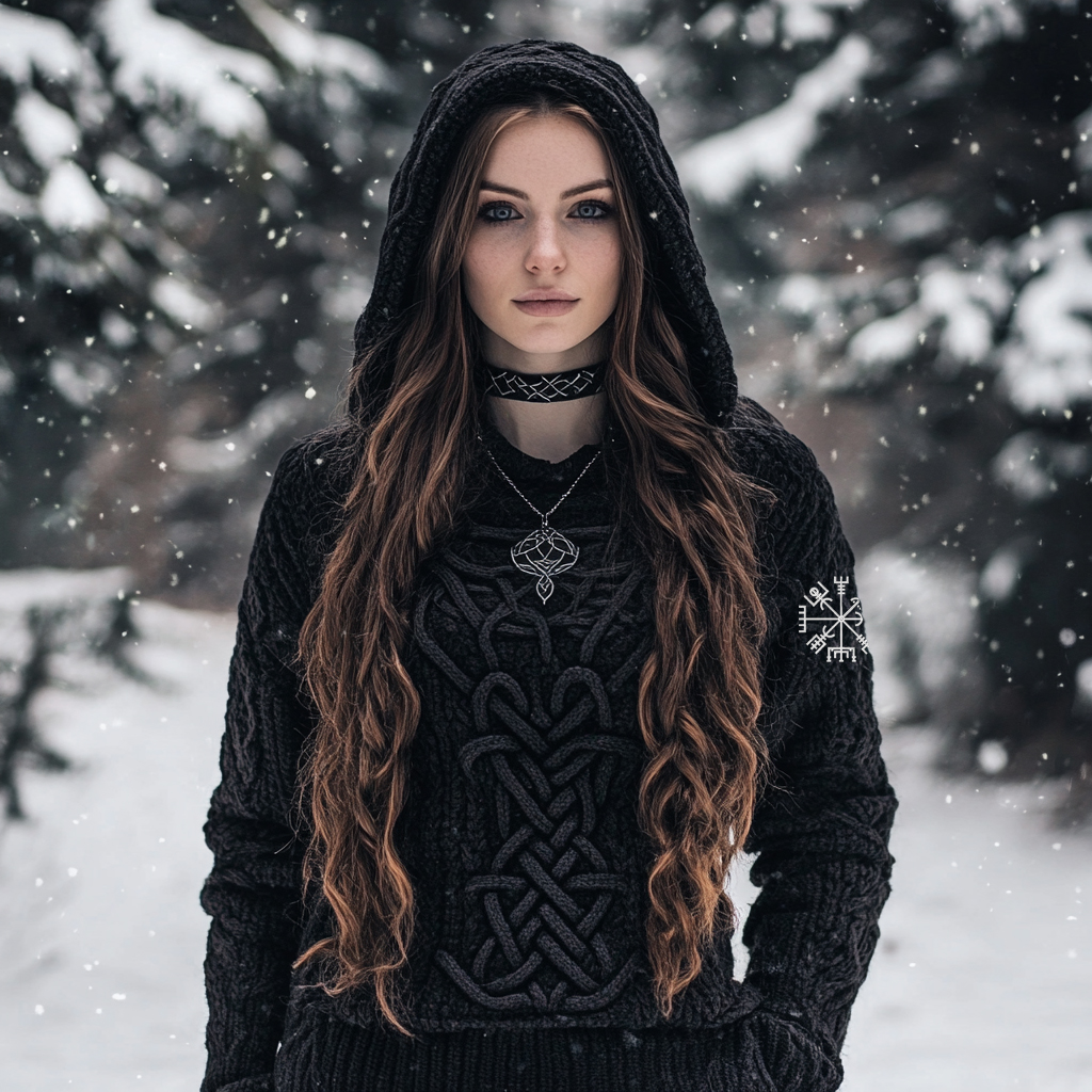 Women's Viking Style Knitted Jacquard Hooded Sweater