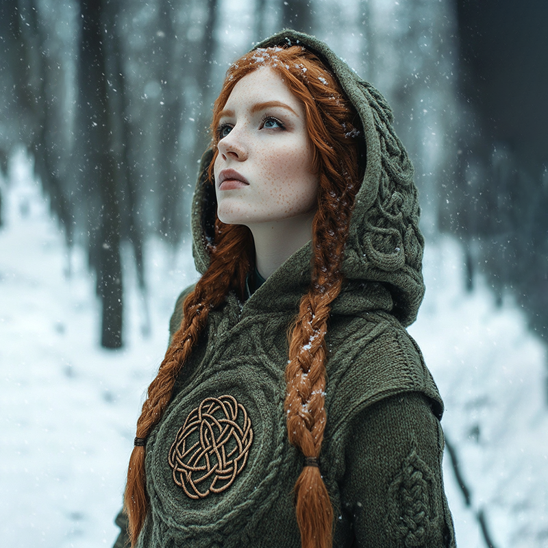 Women's Viking Tribal Celtic Chunky Knit Hooded Sweater