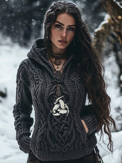 Women's Viking Tribal Witch Inspired Chunky Knit Hooded Sweater