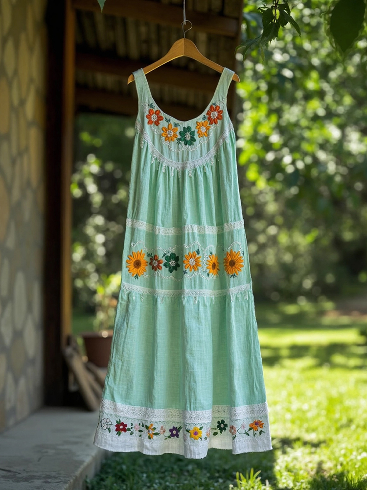 Women's Vintage Bohemian Floral Panel Sleeveless Dress
