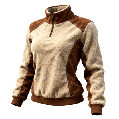 • Design Elements: Contrasting color blocks, half-zip closure, ribbed cuffs and hem