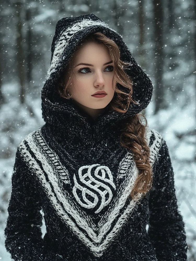 Women's Vintage Jacquard Cozy Knit Hooded Sweater